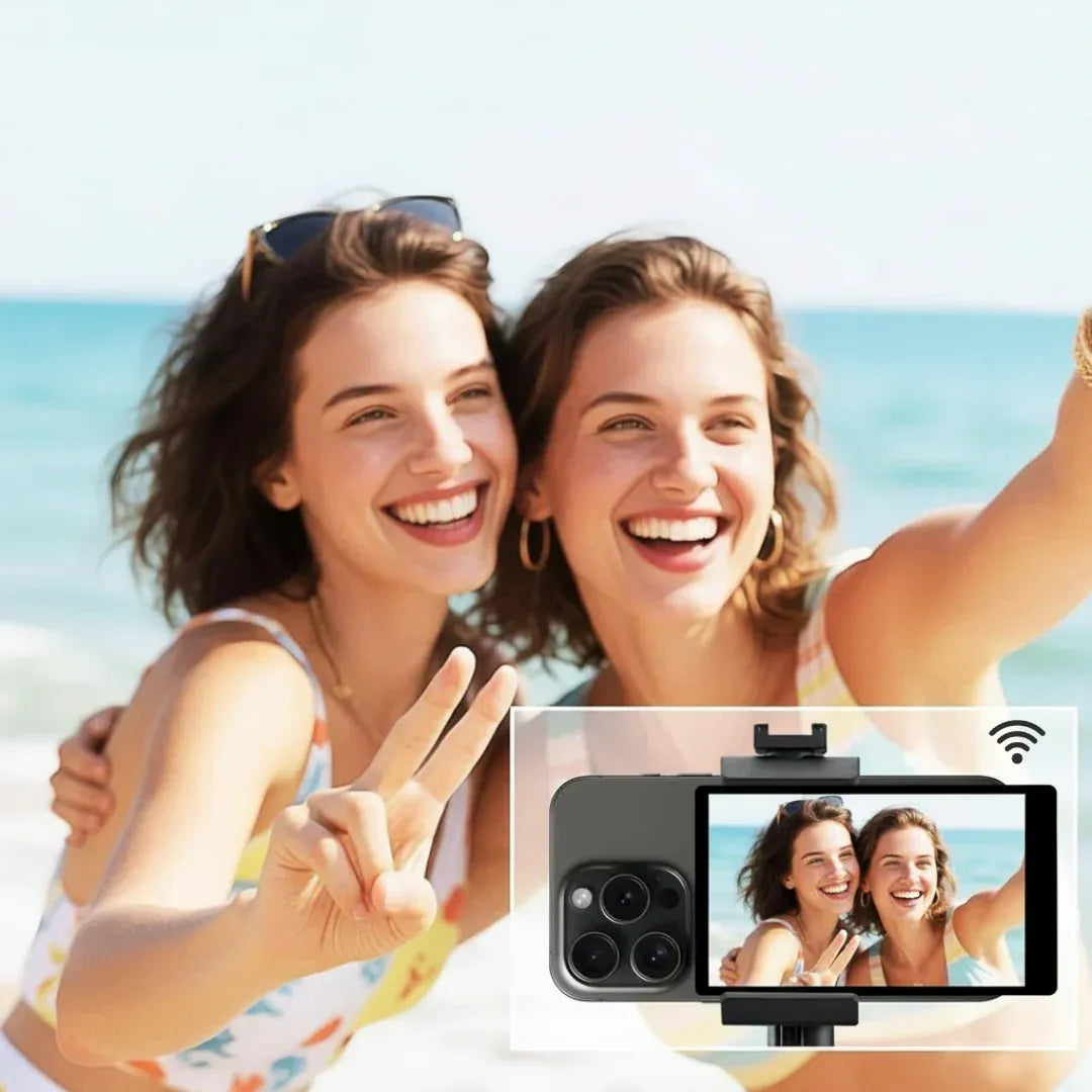 Dispara fotos y videos desde hasta 10 metros de distancia. Graba sin tocar el celular, sin brazos estirados, sin correr.